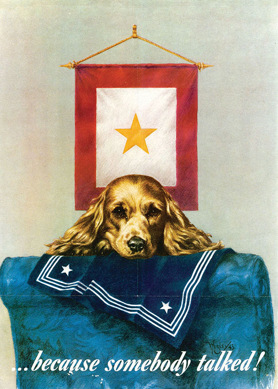During World War II, the practice of displaying Blue Star banners started anew. The War Department issued banner dimensions (most were handmade) and display guidelines .6 The most famous banner commemorated the five Sullivan brothers who died when their light cruiser USS Juneau (CL-52) was sunk in the naval Battle of Guadalcanal at night on 13 November 1942. The Sullivan family BSS with five stars and a photo of the five sailors became a ‘Support the War Effort’ poster .7