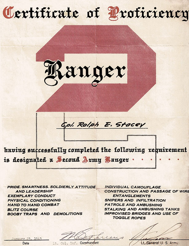 The purpose of the school was “to train instructors in rough-and-tumble fighting tactics and in special techniques” to bring soldiers to an emotional and physical state that would assure successful performance on the battlefield. Once these men understood why they were fighting, the Ranger classes would teach them how to fight most effectively. The division personnel would return to their units to teach Ranger fundamentals to their comrades.15