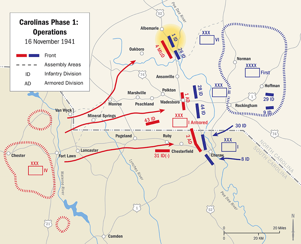 By the time the 1st Division united its three infantry regiments (under the new German triangular organization) at Fort Devens, Massachusetts, to prepare for the Regular Army training exercises at Fort Benning, Georgia, scheduled for the spring of 1940, Private Brucker, wireless radio operator, could send and receive almost twenty words of CW a minute. And because he spoke two foreign languages, the young soldier was assigned to the reconnaissance element.7 A year later, the newly redesignated 1st “Infantry” Division would truck-convoy from Fort Devens to the Carolina Maneuvers. However, few truck drivers existed in the Army of 1941.