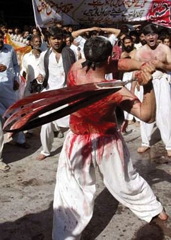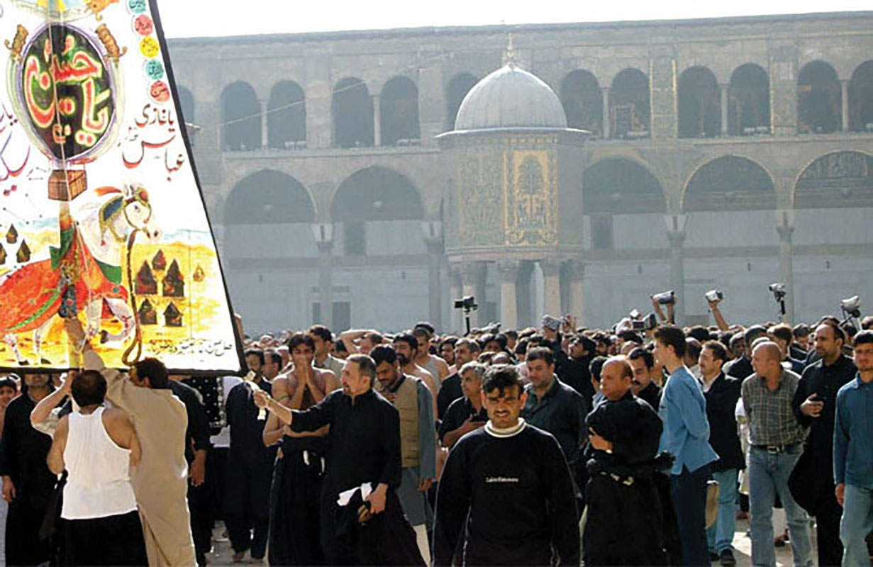 Pilgrims fill the plaza surrounding the Imam Ali mosque during Ashura, the tenth day of Muharram.All the streets in An Najaf leading to the Imam Ali mosque were filled to overflowing with pilgrims during Ashura.Especially devout Shia Muslims flog themselves to atone for the murder of Hussein, grandson of the prophet Mohammed, that created the schism between Shia and Sunni.