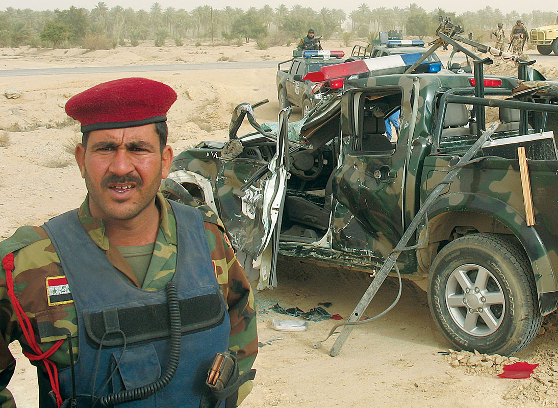 Malcolm regained consciousness with a bandage around his head and an Iraqi SWAT policeman who had treated him, proudly shouting, “OK, mistuh! OK mistuh!” (“You’ll be all right now”). “I felt like I had been smacked in the head with a baseball bat. Everything went black as I flopped face down and slipped down the berm. It was like watching fuzzy TV as I came to with this Iraqi trying to wipe the dirt off my face with a rag. My head hurt a lot.”57