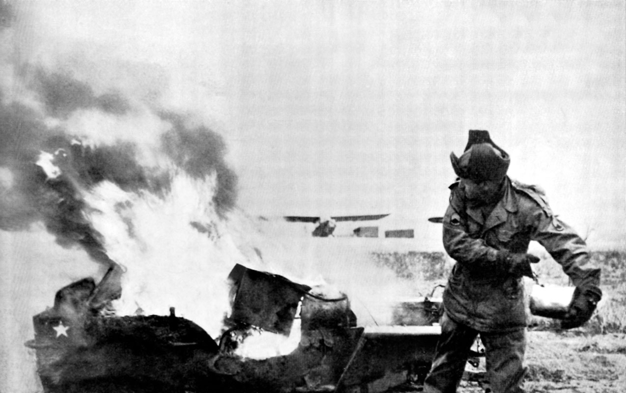As UN troops withdrew from P’yongyang in the face of the Chinese offensive, they were forced to leave behind valuable equipment and supplies. In order to keep resources out of enemy hands, units destroyed vehicles, burned fuel, and generally followed a “scorched earth” policy during the evacuation.