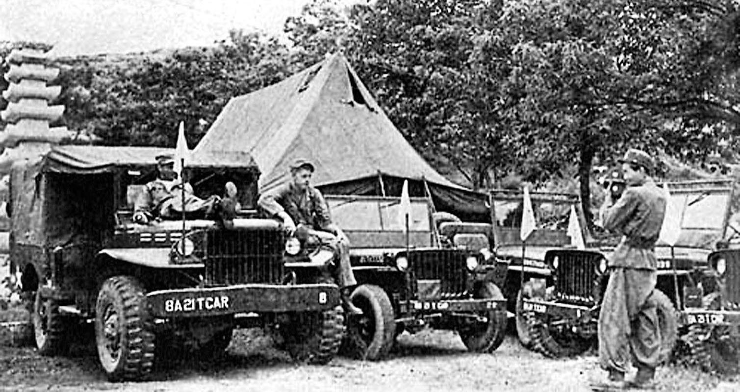 ![The Eighth Army [EUSA] 217th Car Company was dedicated to transport Allied military representatives and UN correspondents to and from the negotiations site. All vehicles had white flags conspicuously mounted.](images/v7n2_1st_rbl_advance/400/car_company.jpg)