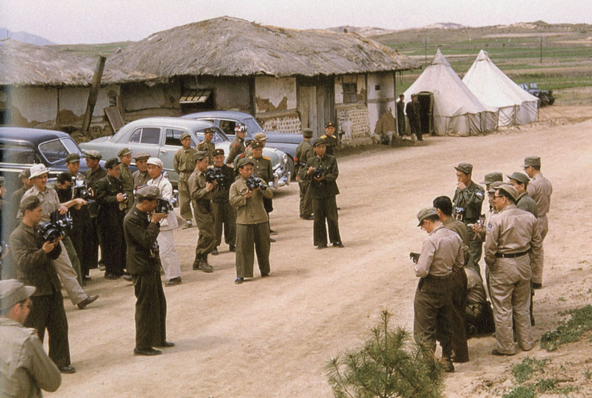In front of an infantry regimental headquarters was the Allied ‘peace camp’—a tent city of thirty or forty large tents and a dozen small VIP ones in the middle of an apple orchard. “It had its own movie theater with a sandbagged generator. The small projector was beset by a million nocturnal mosquitos. There was a barber shop and 48-hour laundry service,” explained Brown. “Every morning and evening the [Allied] delegates met in a tent marked ‘Conference’ to discuss Communist claims and ‘quarterback’ the next day’s activities.”9