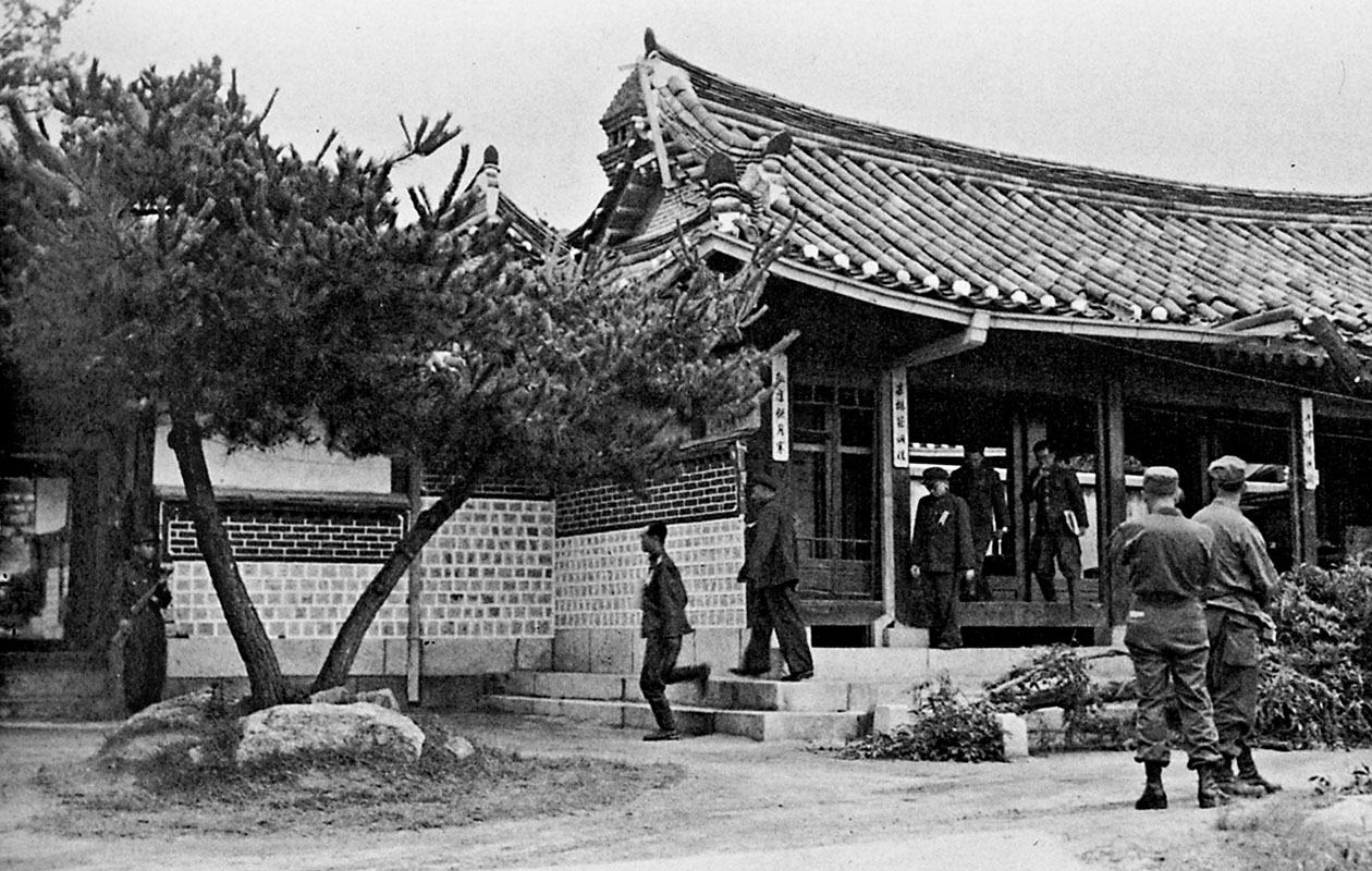 The initial conference site was a well-known Chinese restaurant in Korea. “In its present state it wouldn’t rate a Class B permit in the States,” Brown wrote. “Painted walls and ceiling are peeling. The garden is overgrown. The vines choke out the flowers that were probably carefully cultivated two summers ago. Each Allied negotiator’s statement is usually read from a prepared script and then translated into Korean and Chinese. The discussions move slowly, and the tone is usually one of moderate iciness.”11