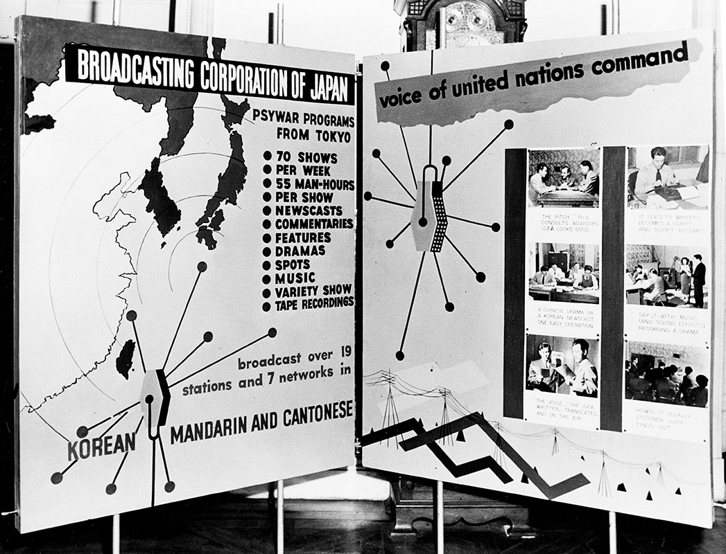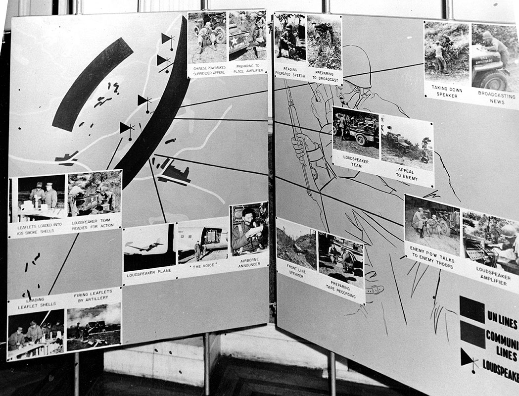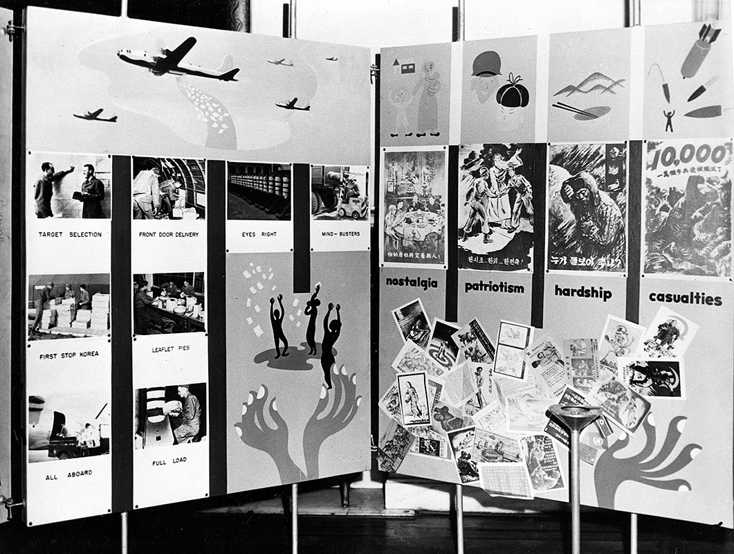 In early 1952, the 1st Radio Broadcasting and Leaflet Group (1st RB&L) integrated its organic Psywar capabilities to complement UN strategic air operations. Far East Air Forces Command (FEAF) had to keep pressure on Communist military units, try to influence UN Command (UNC) armistice negotiations, minimize enemy air attack threats, provide close air support (CAS) for UNC forces, and interdict enemy logistical and communications systems.1 Bomb warning leaflet drops coupled with radio broadcasts were natural Psywar operations. It prepared the 1st RB&L to execute Plan PATRIOT emphasizing Korean Independence.2 These two efforts provided good examples for depiction in Operation EYEWASH, a traveling public information display that explained strategic and tactical Psywar operations in Korea to a variety of audiences in Japan.