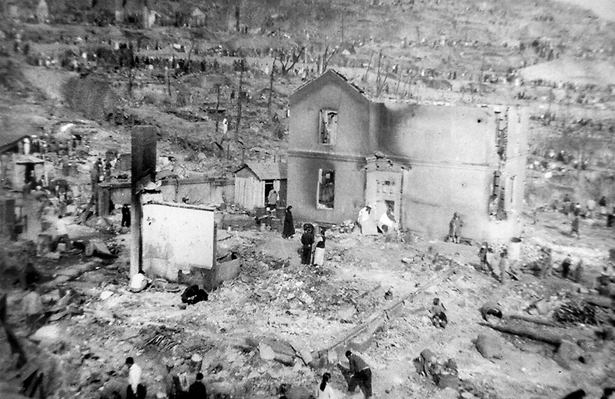 The Radio Pusan site (lower right) after the great 1953 fire.