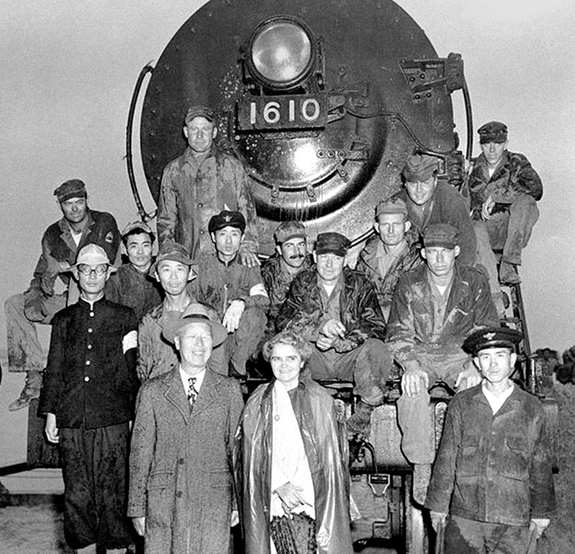 South Korean President Syngman Rhee and his Austrian wife Francesca commemorate the reopening of the Han River railroad bridges in 1951.